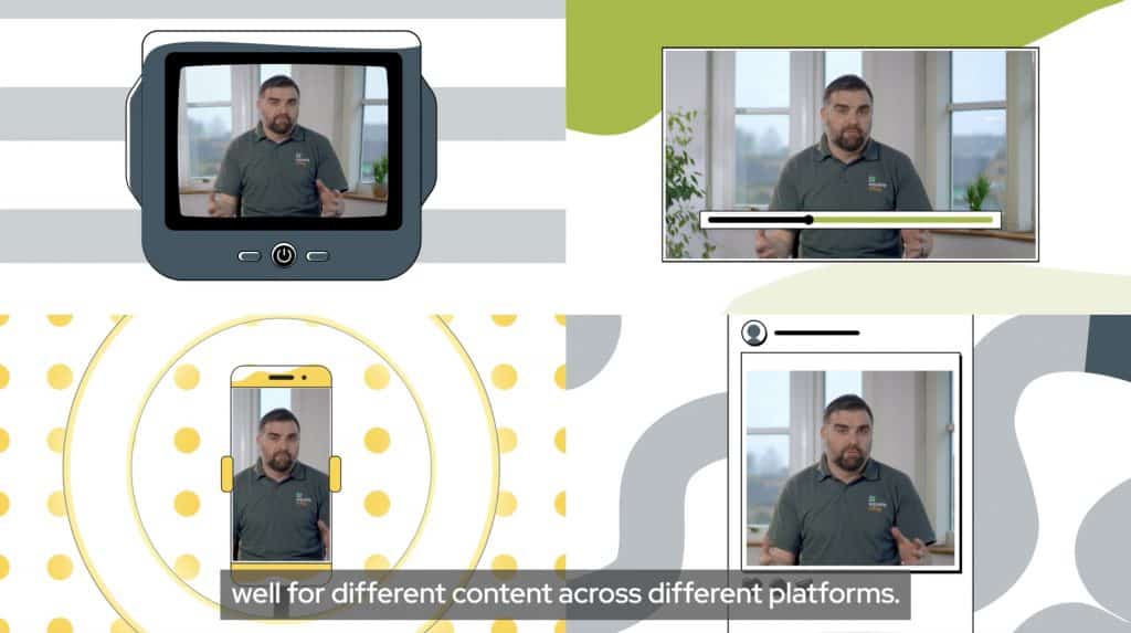 With the rise of mobile usage, especially for consuming video content, the vertical 9:16 aspect ratio has gained prominence. It’s ideal for platforms like TikTok, Snapchat, and Instagram Stories, where vertical viewing is the norm. It also has the highest engagement rates on mobile as it fills the majority, if not the whole screen. Great for B2C products and services that are promoted primarily through social media.